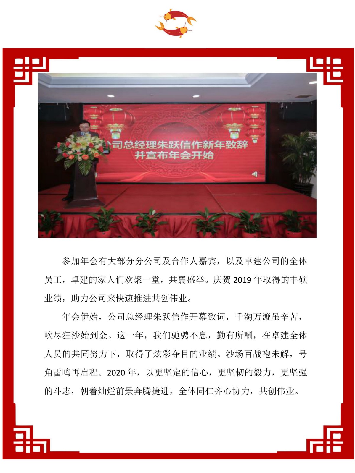 熱烈祝賀河南卓建工程管理有限公司2019年度總結表彰暨2020迎新年會圓滿成功